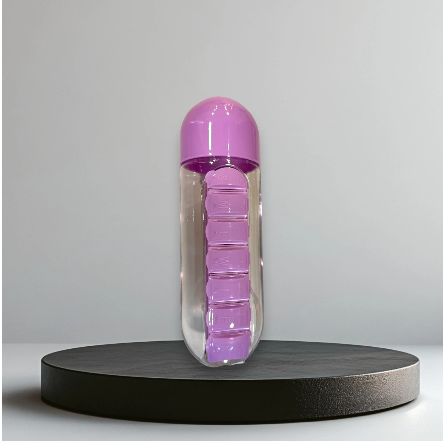 BOTTLE WITH PILL BOX ORGANIZER